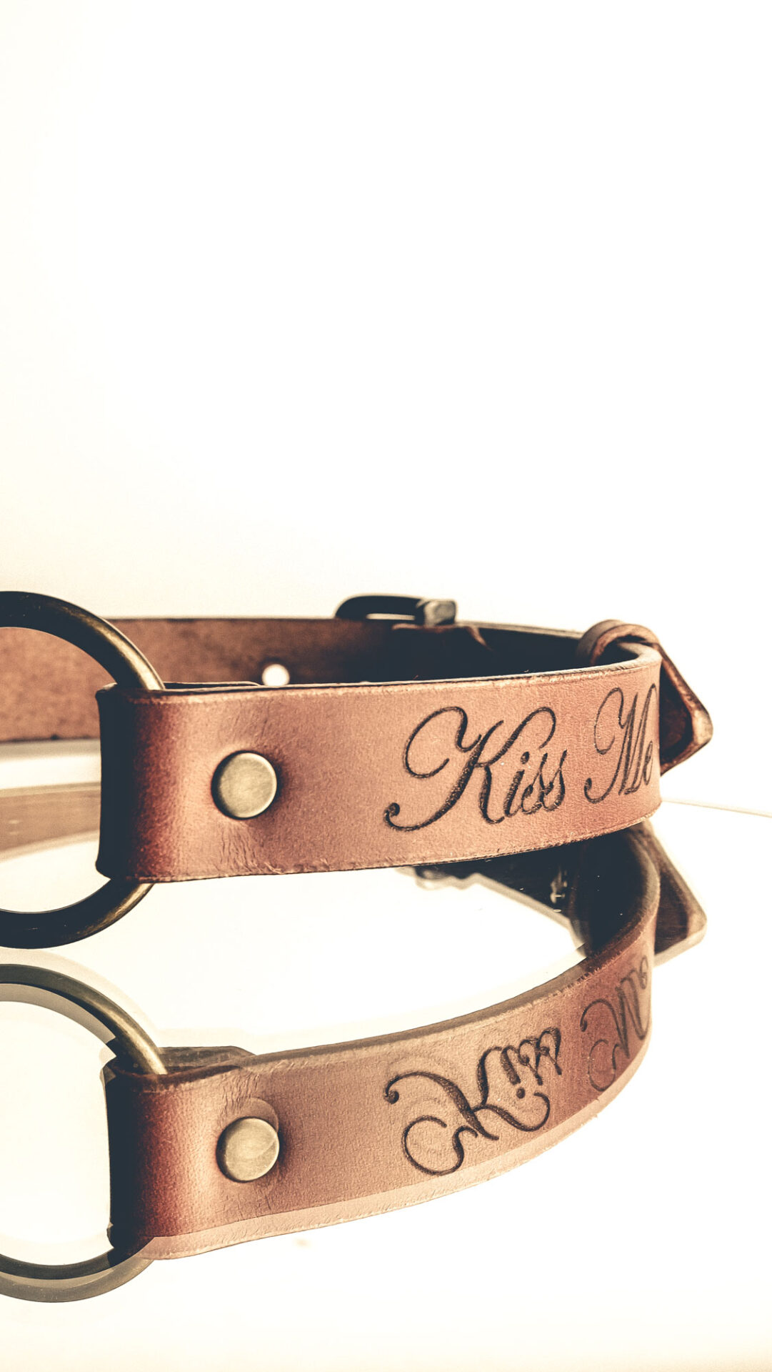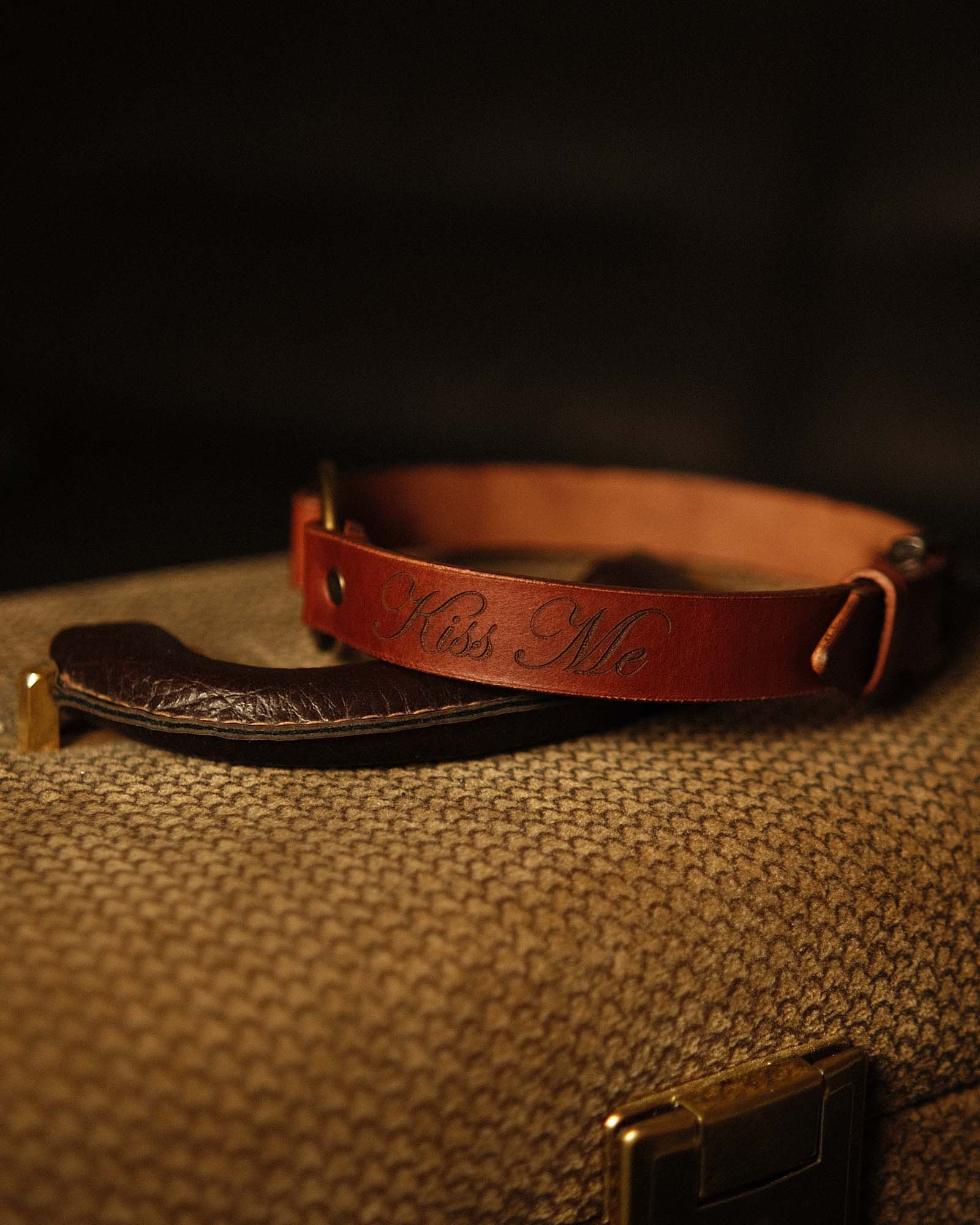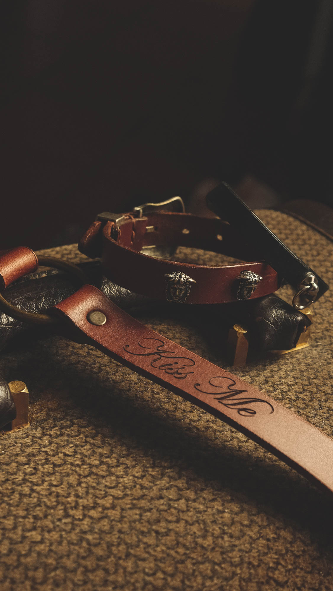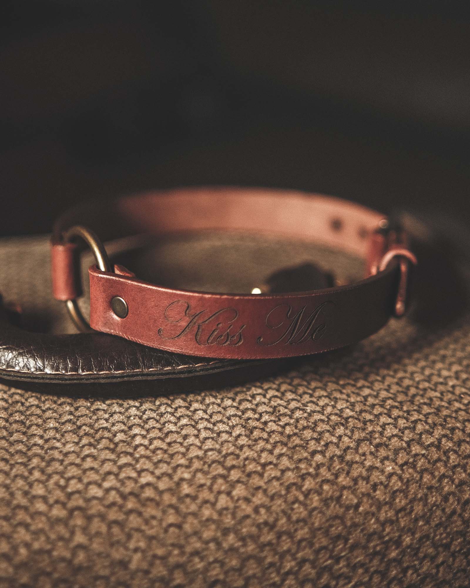 Ein handgefertigtes italienisches Lederhalsband, das sich mit Ihrer eingravierten Botschaft in ein zutiefst persönliches Symbol verwandelt – subtil, elegant und bedeutungsvoll.