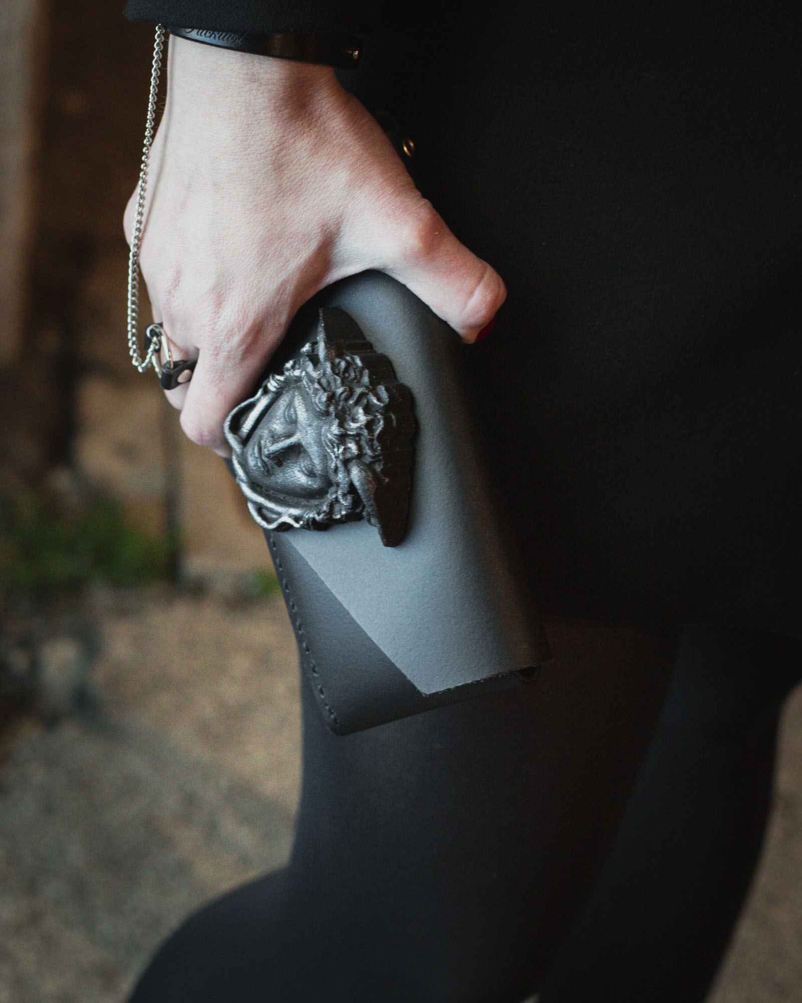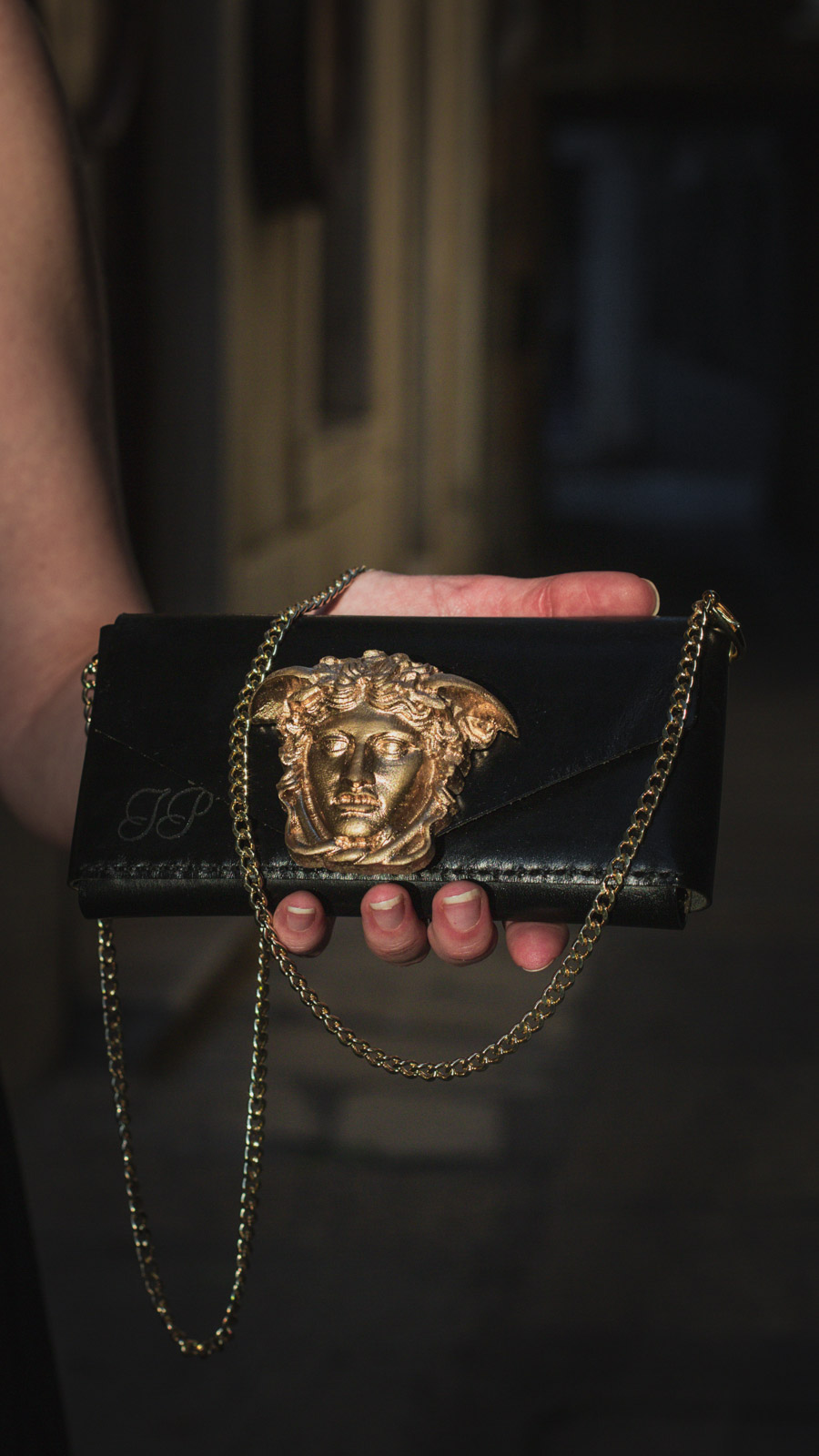 Each bag is individually handmade in our Italian workshop, combining timeless craftsmanship with artistic detail. The smooth black leather is soft to the touch yet structured enough to hold its shape. The Medusa motif — symbolizing power, transformation, and feminine strength — turns this everyday piece into a statement of identity and intent.