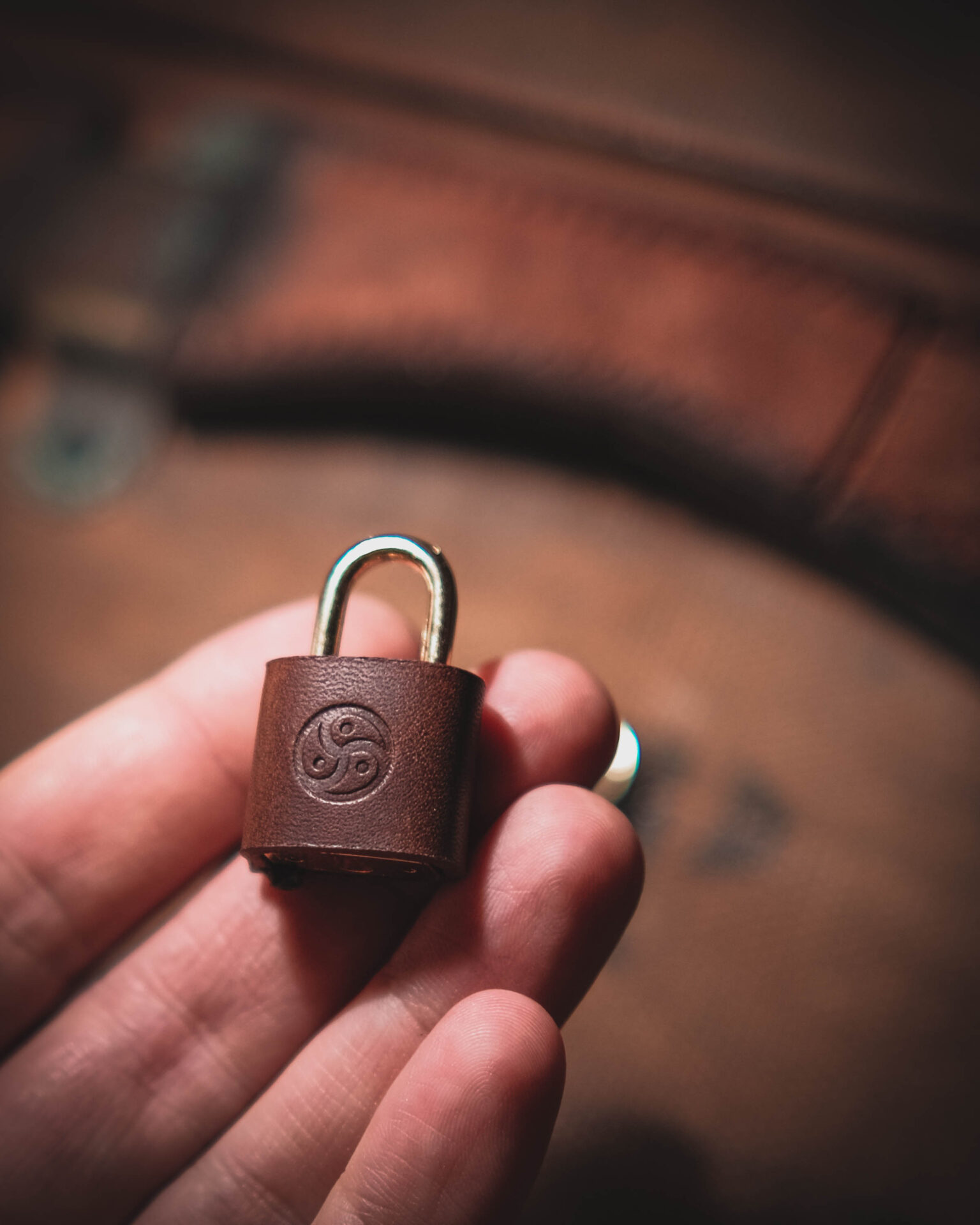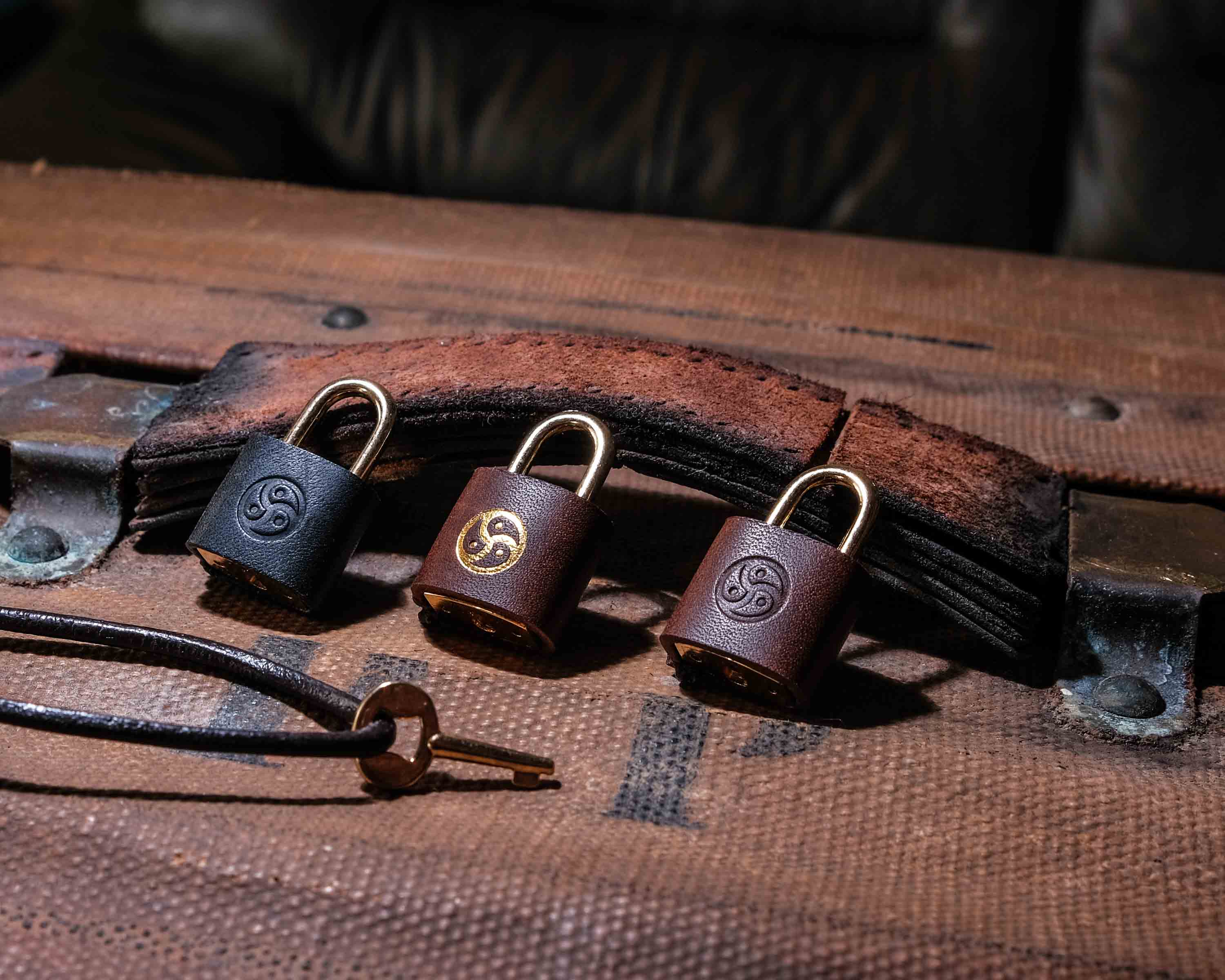 – Solid brass padlock wrapped in leather