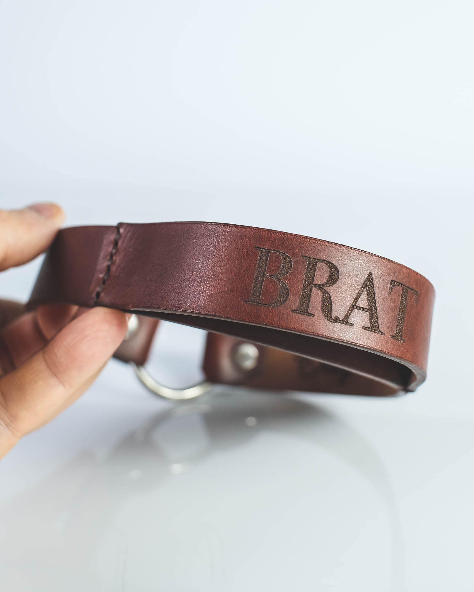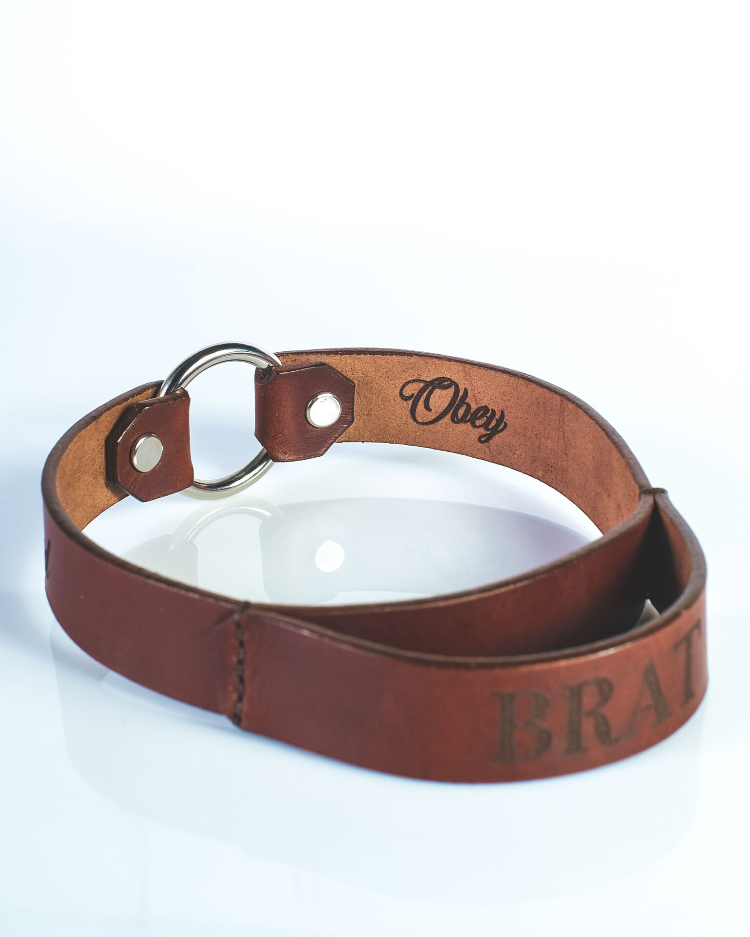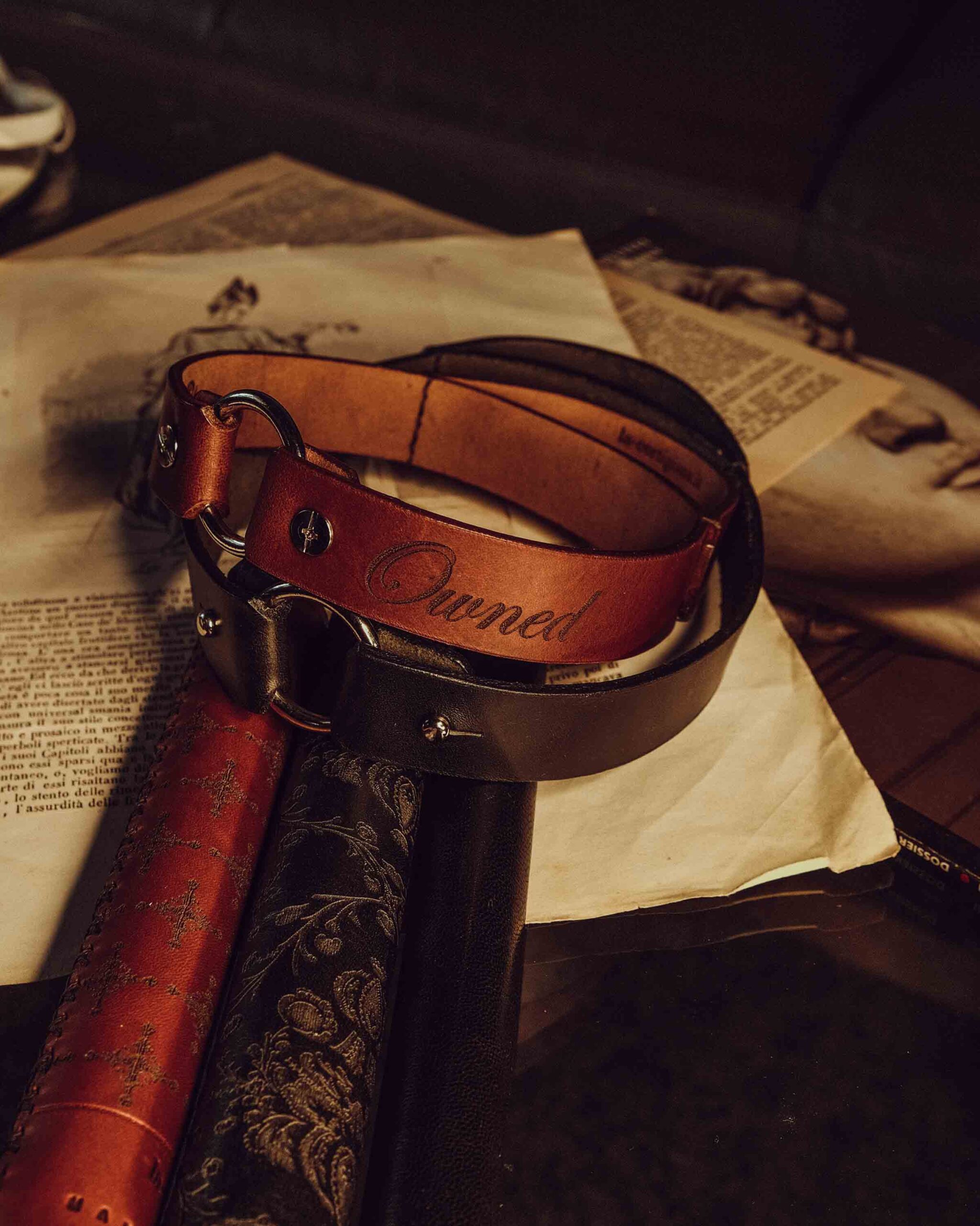 This handcrafted locking collar is built for those who understand the depth of power exchange. Made from thick, vegetable-tanned Italian leather, it’s strong, secure, and shaped to sit perfectly around the neck. A sturdy steel O-ring allows attachment of a leash or accessories, while a discreet handle on the back lets the Dominant guide and position their submissive partner with ease.